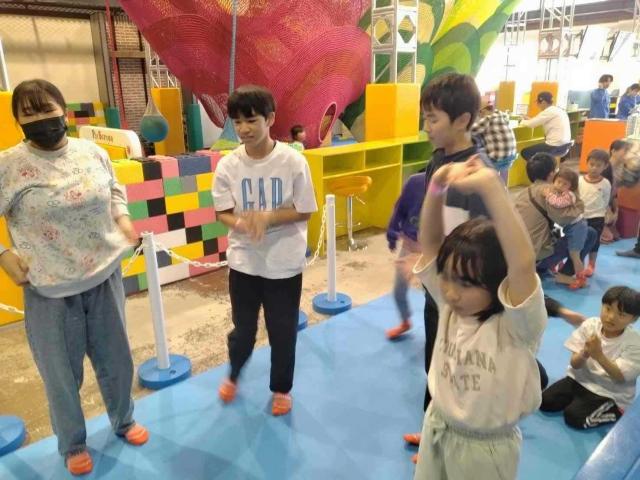 初めてトランポリンに挑戦する子も、経験のある子も、みんな目を輝かせていました。最初は少し緊張した面持ちの子もいましたが、いざ跳び始めると、その楽しさに夢中!全身を使って高くジャンプしたり、バランスを取ろうとしたり、思い思いの方法で体を動かし、トランポリンの上は子どもたちの元気な声と笑顔でいっぱいになりました。